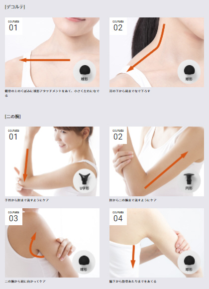 鎖骨の上のくぼみに球形アタッチメントをあて、小さく左右になでます。