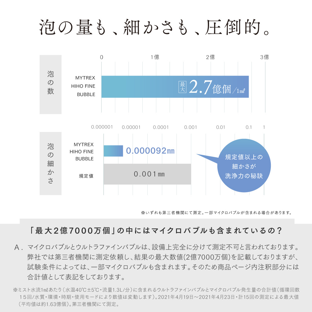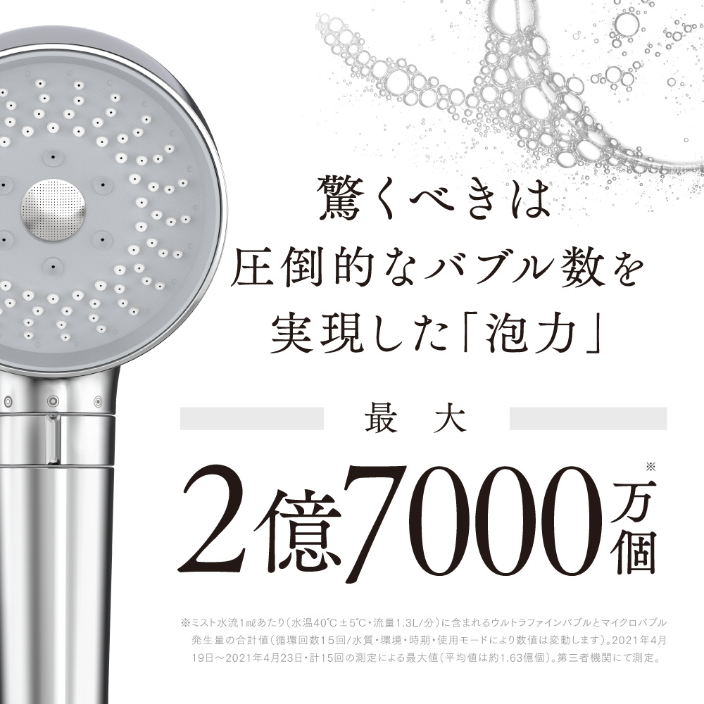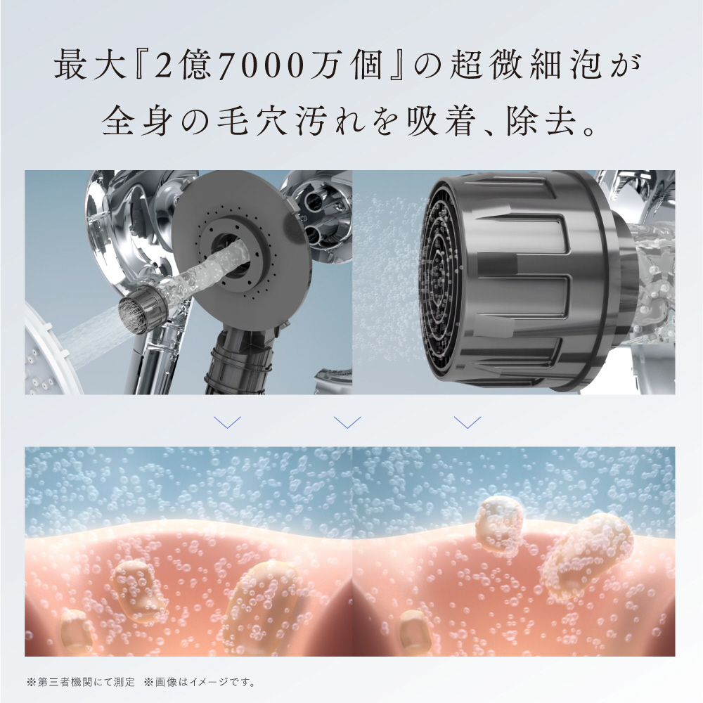 極上の「泡美容」はじまる。最大2億7000万個のファインバブルで全身まるごと、美しく。浴びるだけで頭の先から足の先まで、全身の汚れをくまなく洗い流す革新的なシャワーヘッドです。