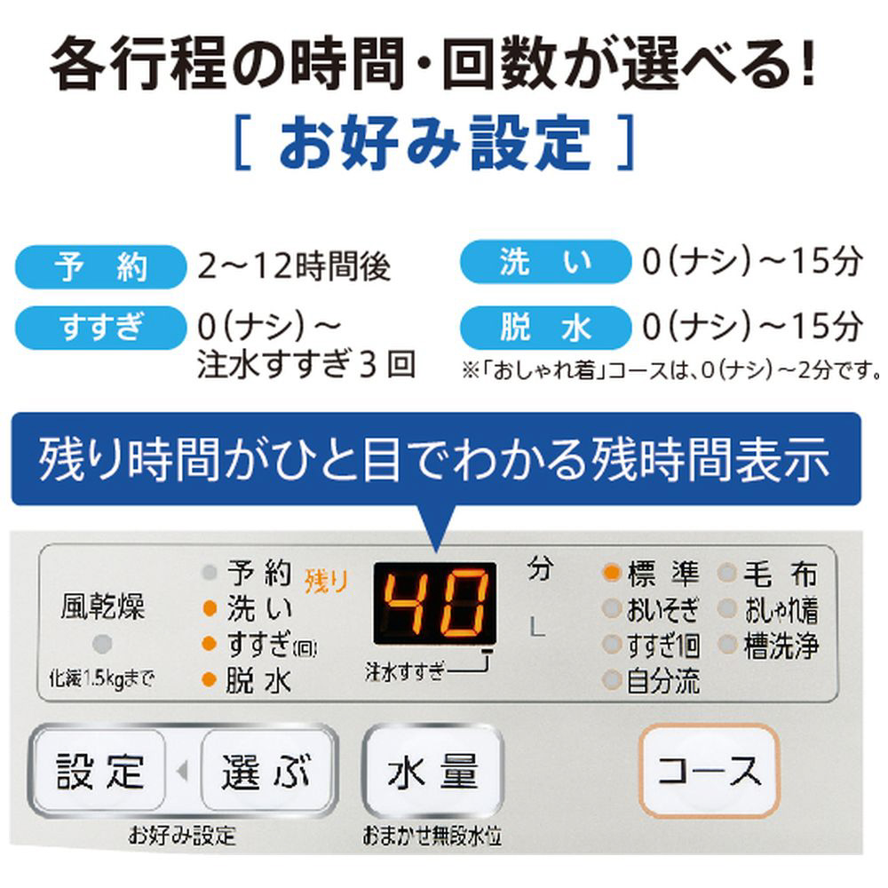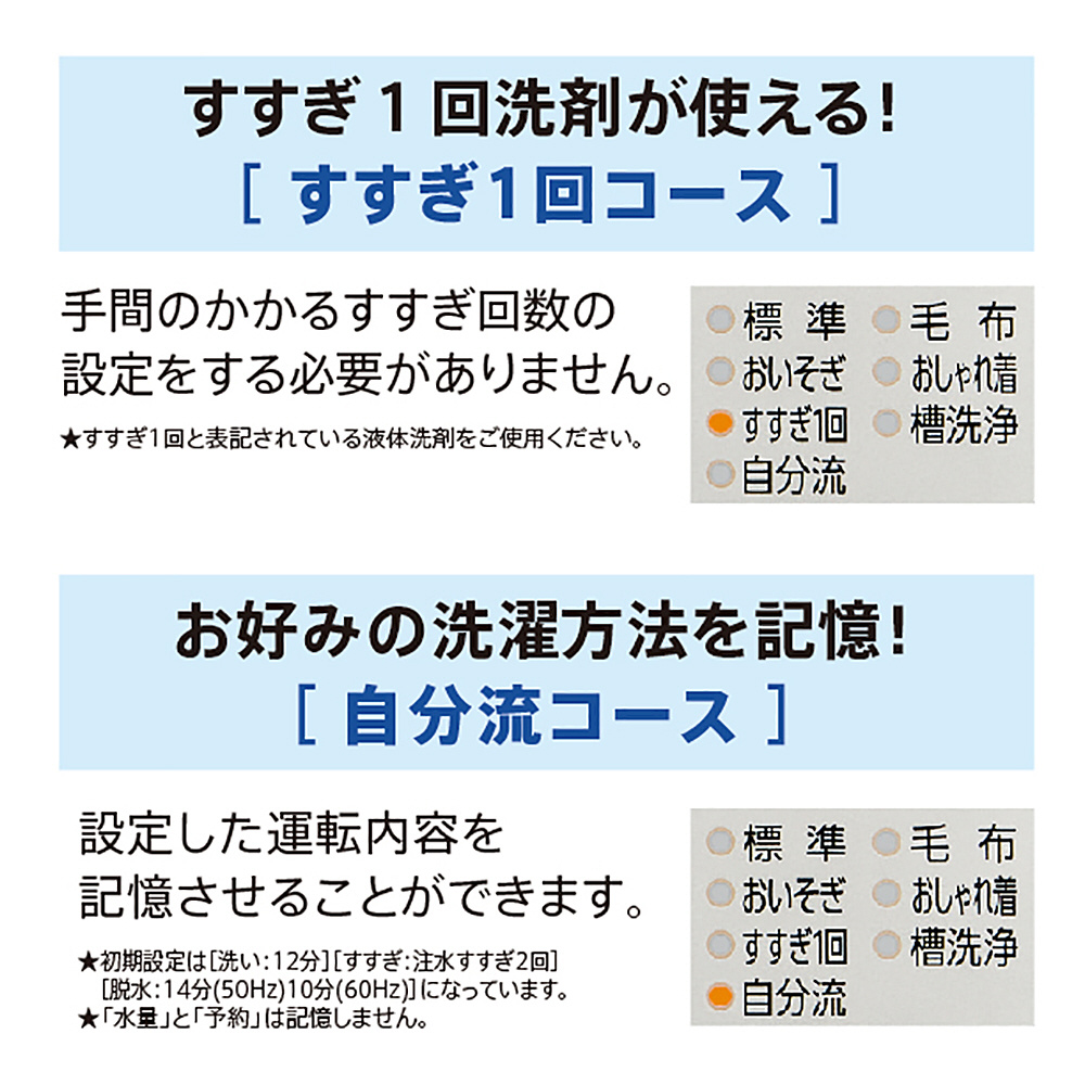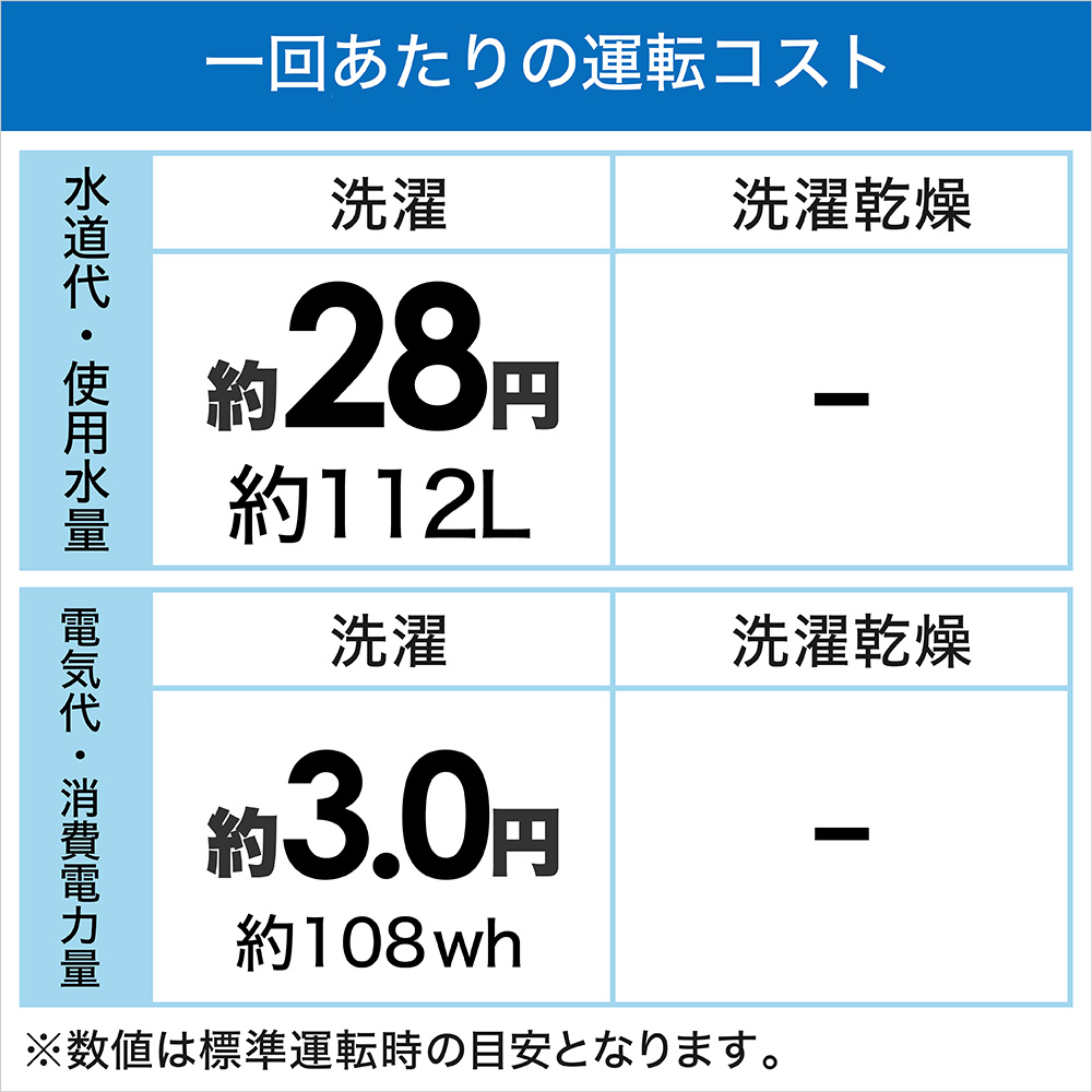 | 運転時間[洗濯時] | 約40/36分(50/60Hz) |