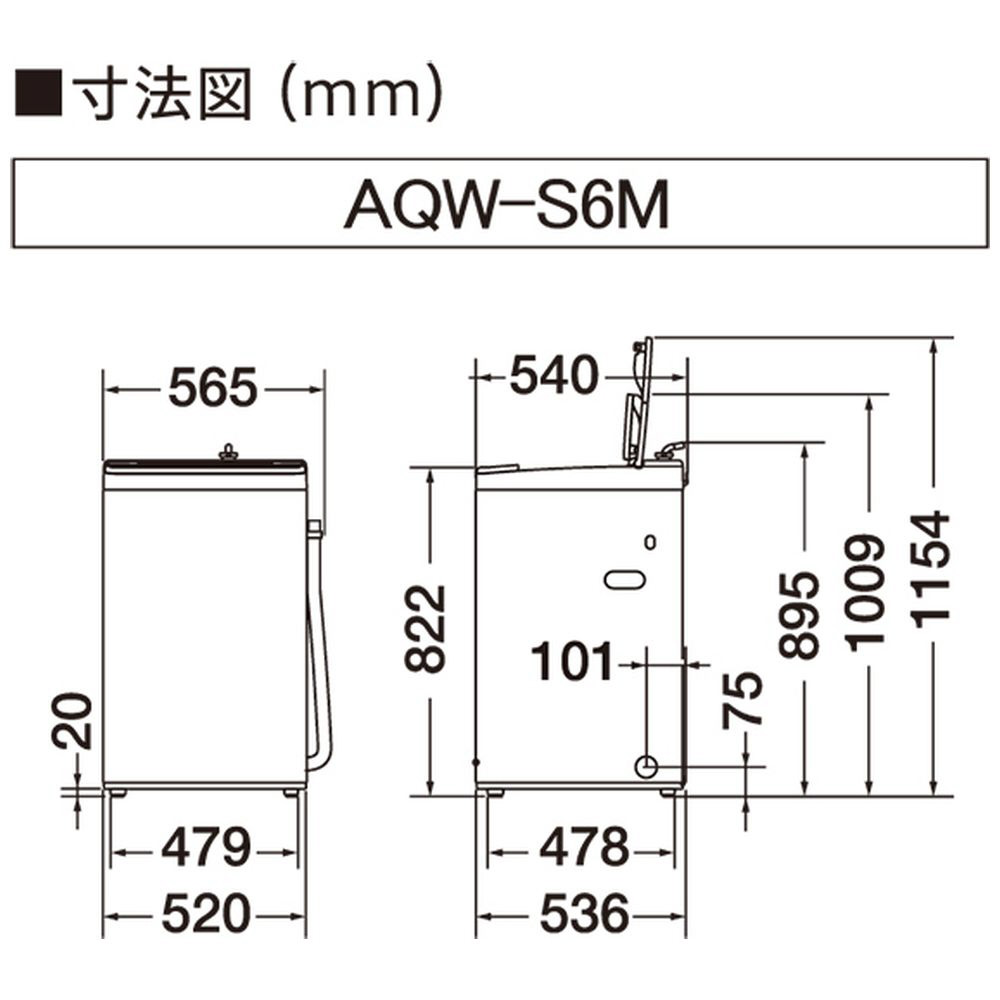 全自動洗濯機 ホワイト AQW-S6M-W [洗濯6.0kg /簡易乾燥(送風機能) /上開き]
