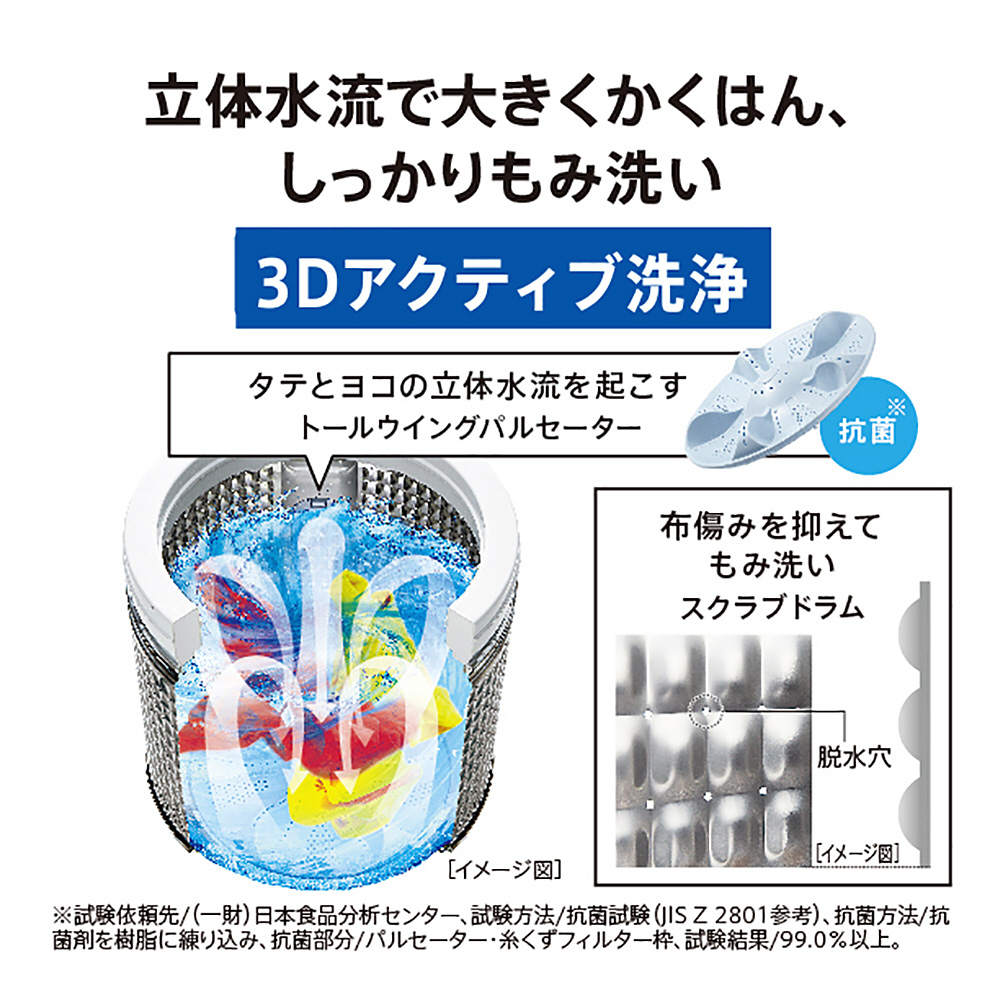 ■布傷みを抑えて、しっかりもみ洗い 「3Dアクティブ洗浄」