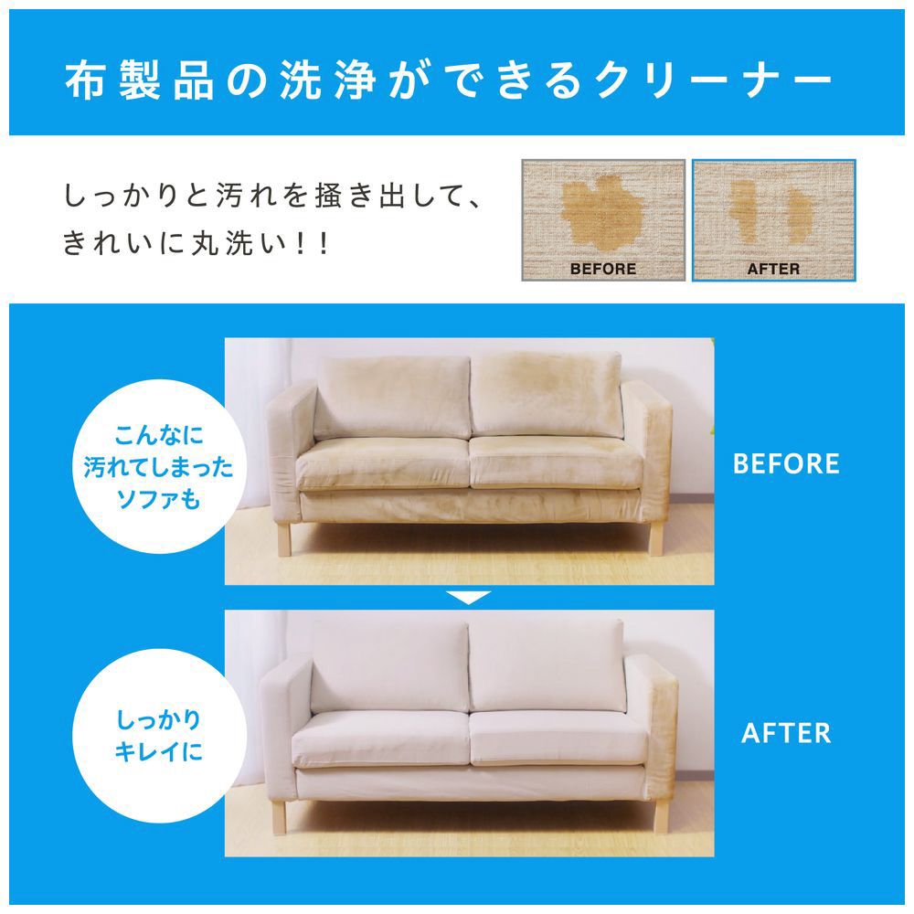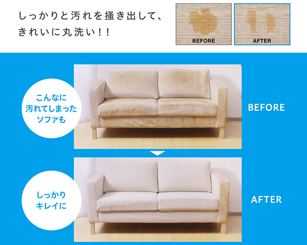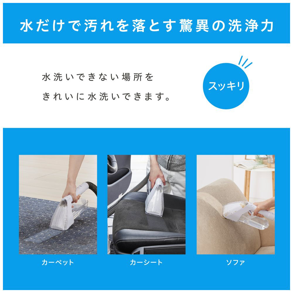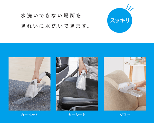 カーペットやカーシート、ソファなど水洗いできない場所をきれいに水洗いできます。