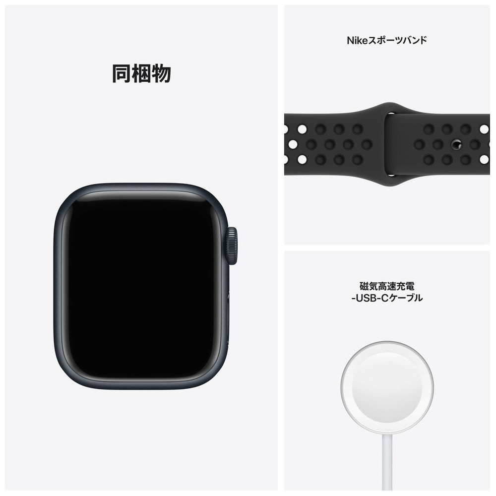 Apple Watch Nike Series 7(GPS+Cellularモデル) 41mm ミッドナイトアルミニウムケースとアンスラサイト/ブラックNikeスポーツバンド[レギュラー] ミッドナイトアルミニウム MKJ43J/A