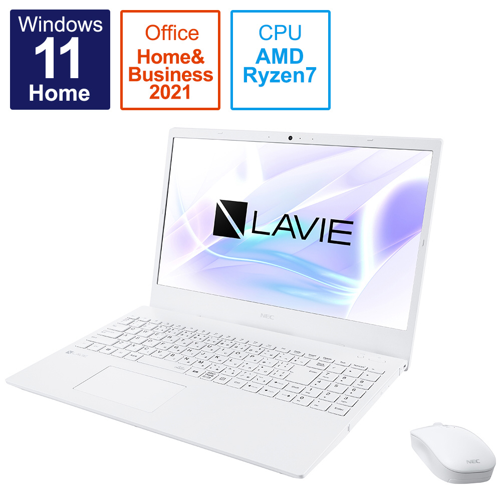 ノートパソコン LAVIE N15 パールホワイト PC-N1565CAW [15.6型 /Windows11 Home /AMD Ryzen 7 /Office HomeandBusiness /メモリ:8GB /SSD:512GB /2021年秋冬モデル]