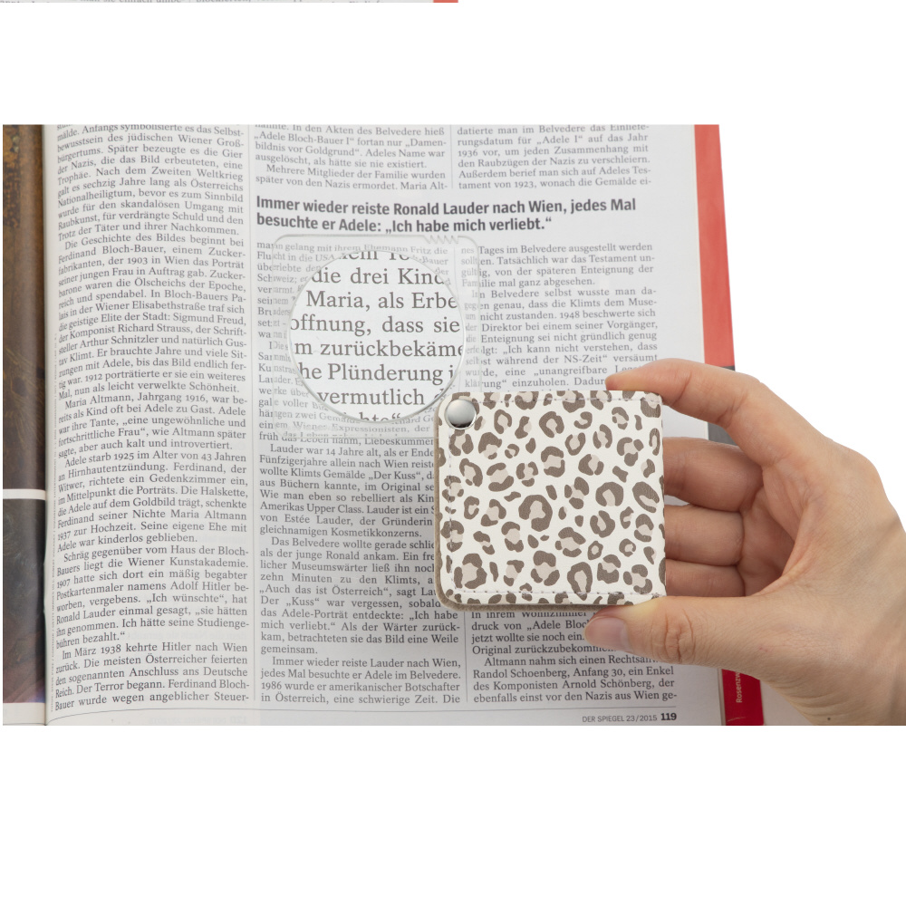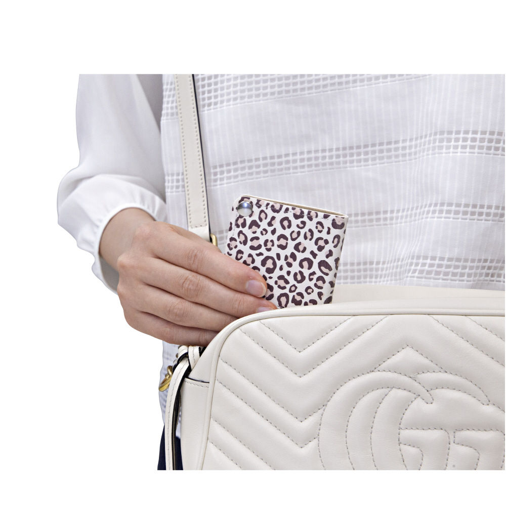 ケースの素材には丈夫で上品な人口皮革素材を採用し、やさしい色調のレオパード柄をデザインしました。