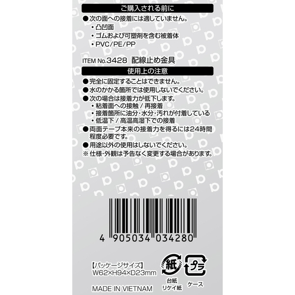 | 商品名 | 3428 配線止め金具 19.5×10.0mm/10個入り 黒色 3428 |