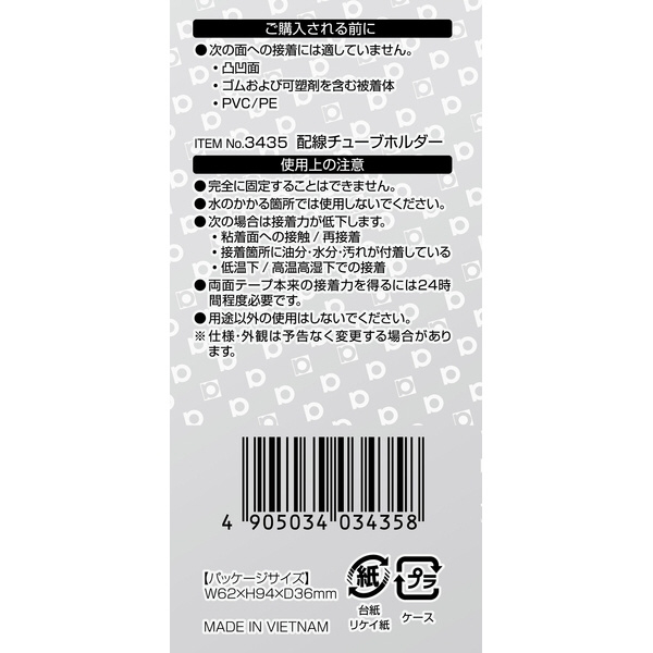 | 商品名 | 3435 配線チューブホルダー 7φ用/5個入り 黒色 3435 |