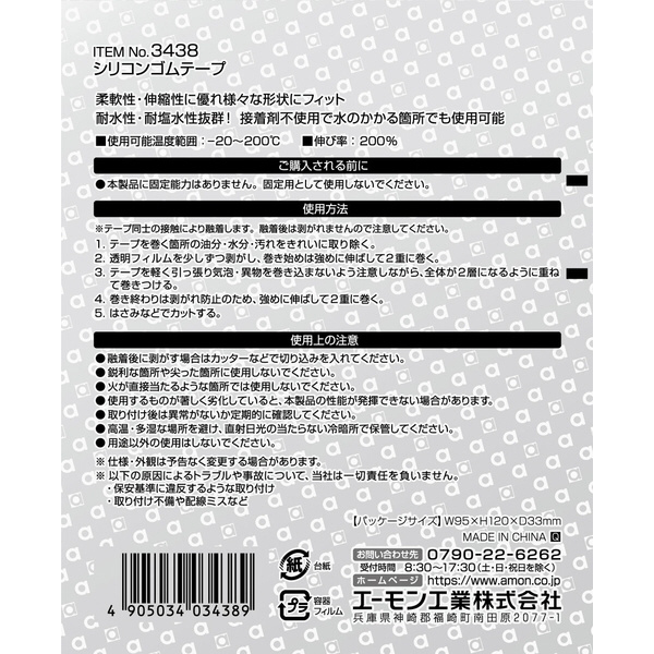 | 商品名 | 3438 シリコンゴムテープ 幅25mm×厚さ0.5mm 全長:約3m 黒色 3438 |
