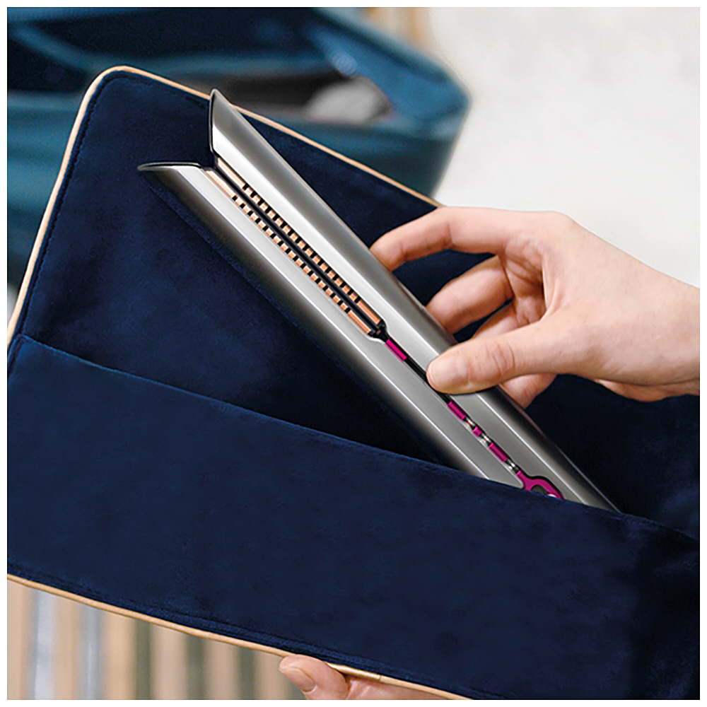 数量限定ダークブルー/コッパ―カラー。より低温で理想のストレートを叶えるコードレスヘアアイロンです。ストレートヘアもカールもこれ一台。収納ボックス付き。