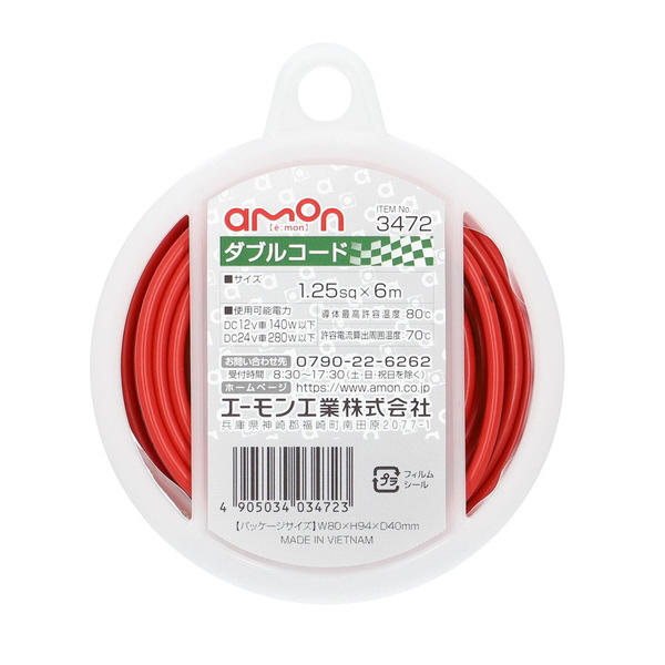 3472 ダブルコード コードサイズ:1.25sq 長さ:6m 赤/黒 赤黒 3472
