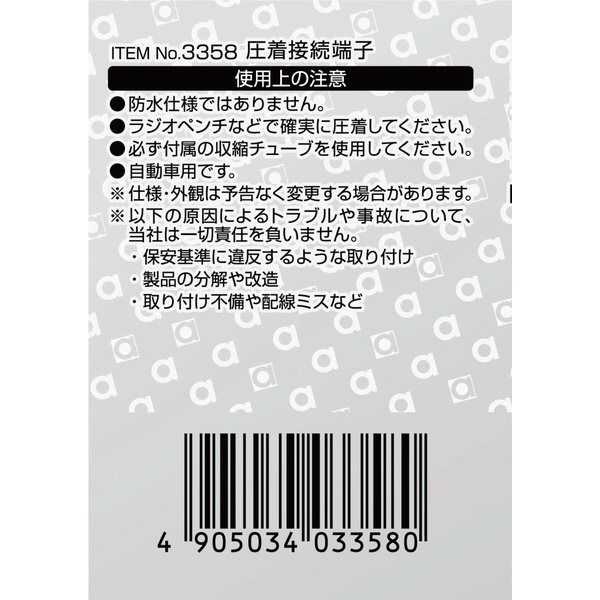 | 商品名 | 3358 圧着接続端子 AV(S)0.12〜0.3sq/9個入り 3358 |