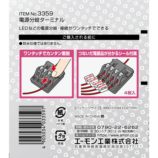 | 商品名 | 3359 電源分岐ターミナル DC12V・120W以下/DC24V240W以下 3359 |