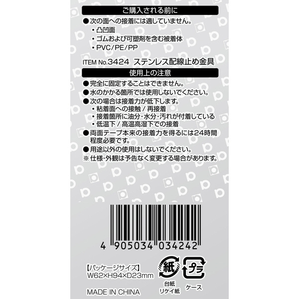 | 商品名 | 3424 ステンレス配線止め金具 25.0×15.0mm/10個入り シルバー 3424 |