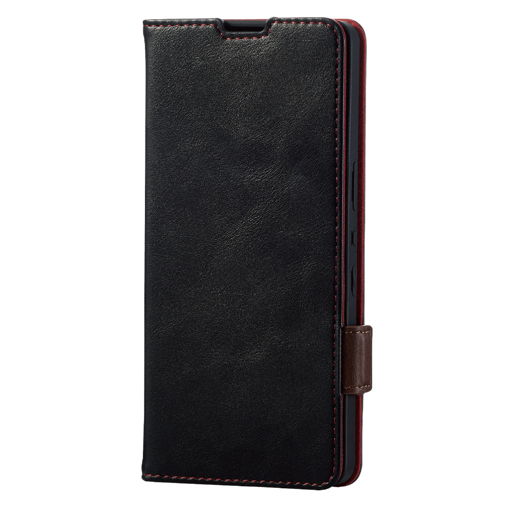 AQUOS zero6(SHG04) レザーケース 手帳型 ステッチ 耐衝撃 磁石付き ブラック PM-S214PLFYBK
