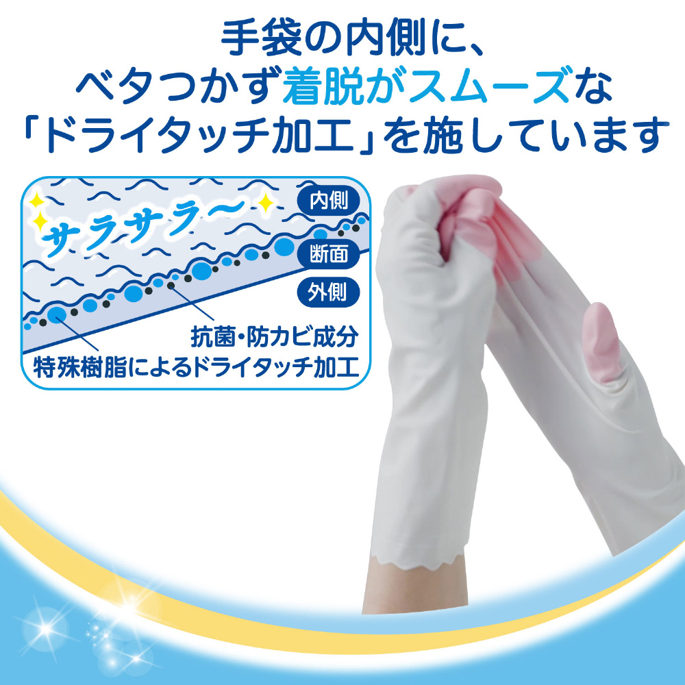 ●着脱がスムーズな「ドライタッチ加工」を施しています。