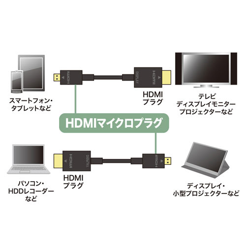 2.0m イーサネット対応 ハイスピードHDMIマイクロケーブル ブラック KM-HD23-20K [2m /HDMI⇔MicroHDMI /スタンダードタイプ /イーサネット対応]