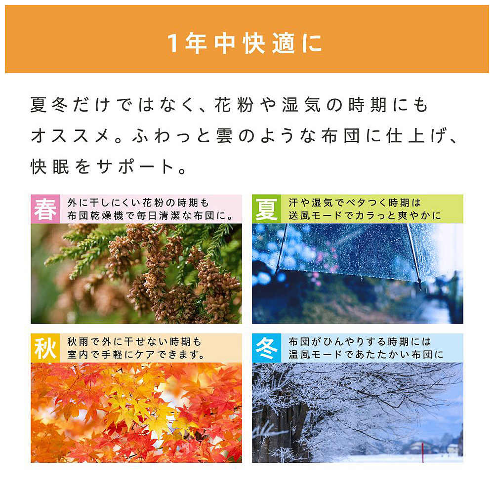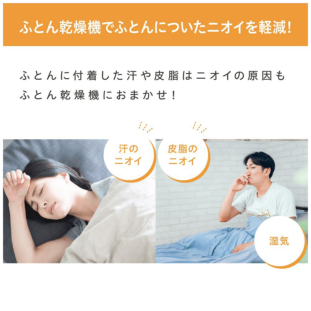 ふとん2組を同時に乾燥やあたためのできる、ツインノズルのふとん乾燥機カラリエです。