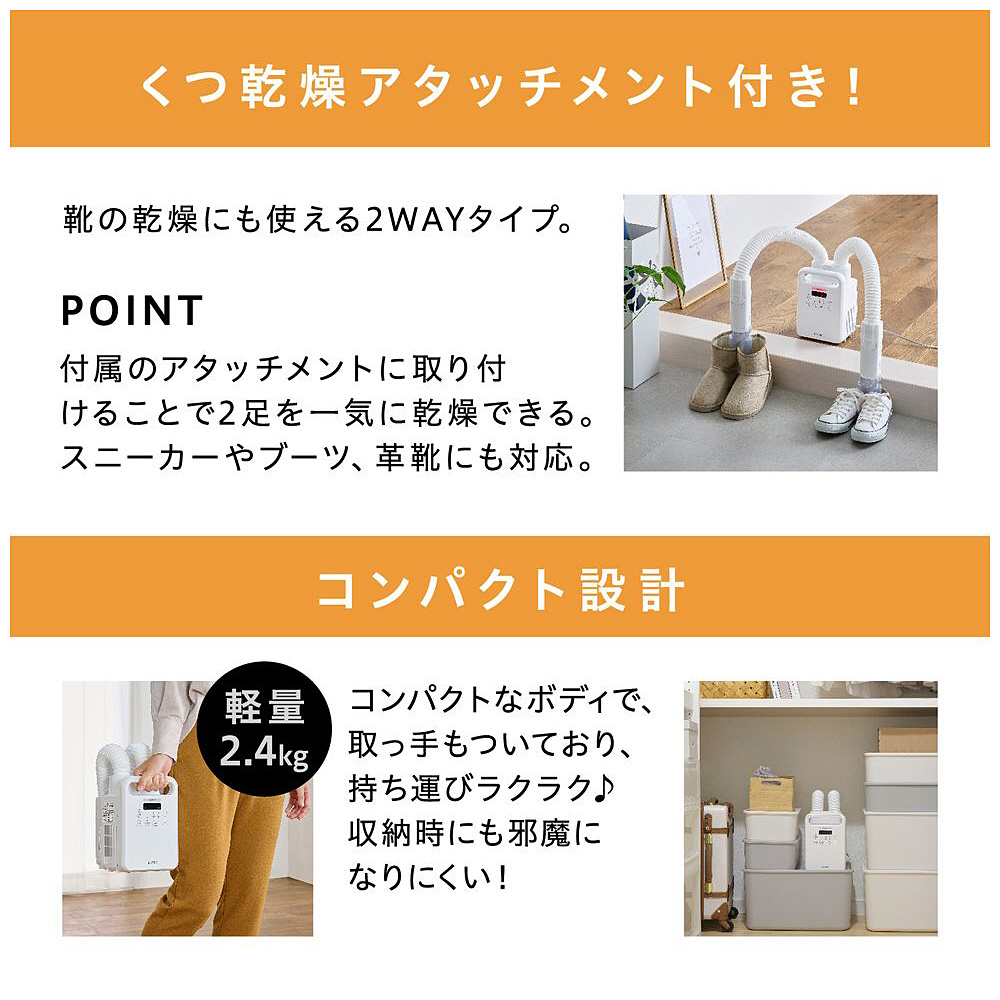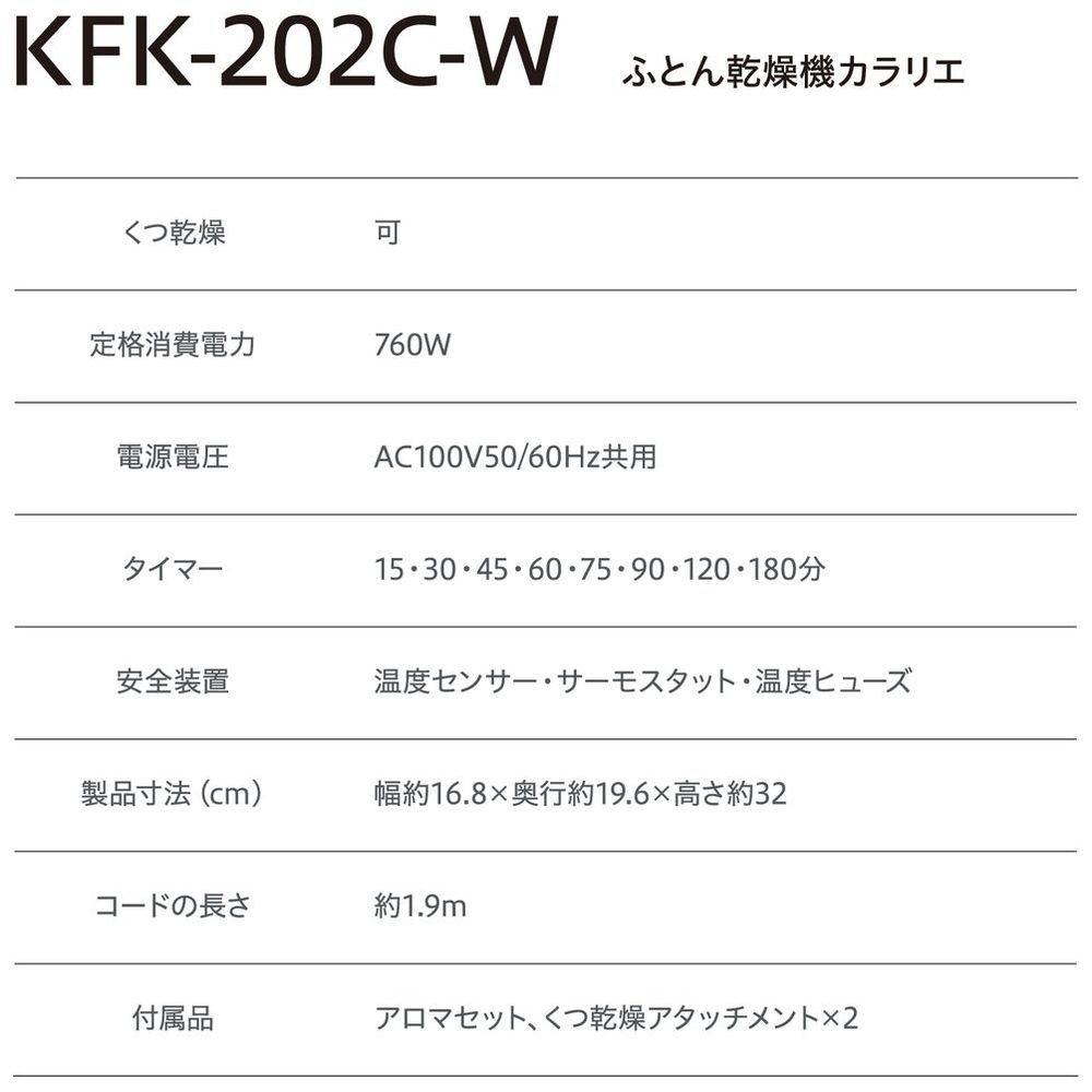 布団・くつ乾燥機 カラリエ ツインノズル KFK-202C-W [マット無タイプ /ダニ対策モード搭載]
