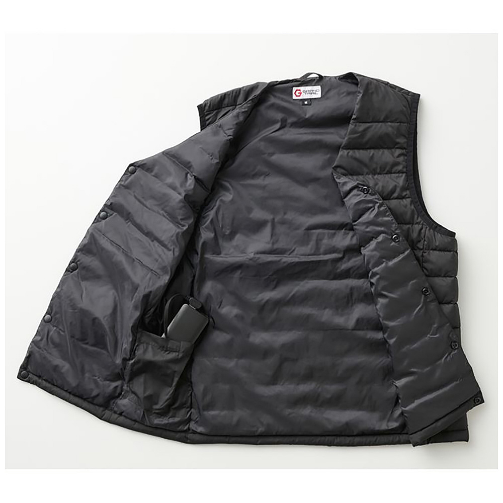 すばやく均一にあたたまるカーボンナノチューブヒーターを背面上部に使用したインナーベストとモバイルバッテリーのセットです。