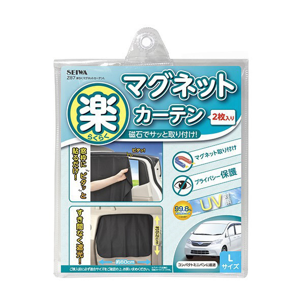 | 商品名 | 車内用品 楽らくマグネットカーテン 遮光生地 Lサイズ 磁石貼付タイプ Z87 |
