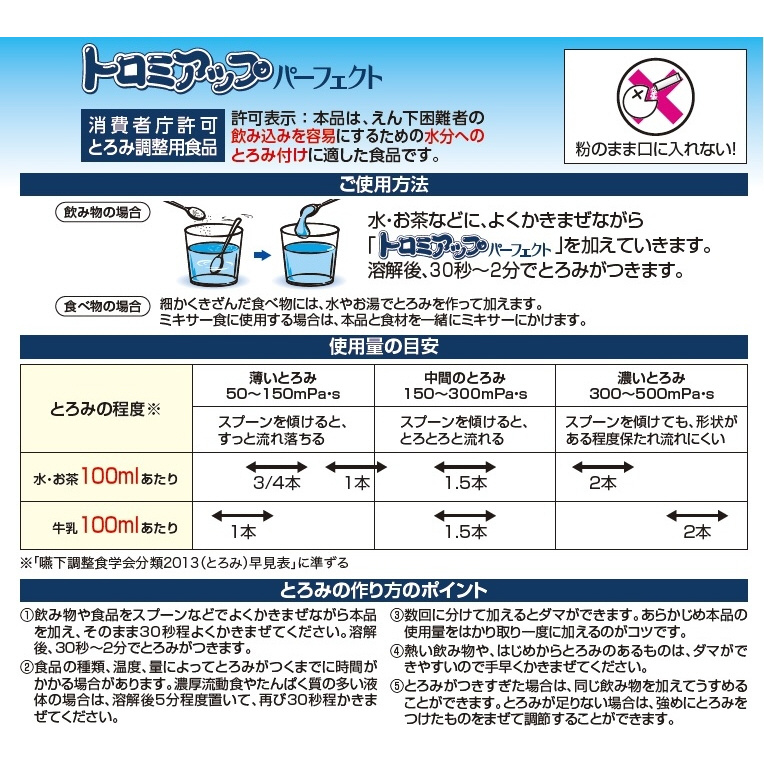 ●調整後、飲食される前に必ず食べやすいトロミであるかどうかをご確認ください。
