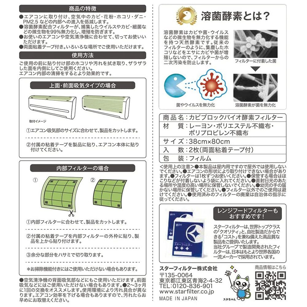 | 商品名 | カビブロックバイオ酵素フィルター エアコン用 スターフィルター |