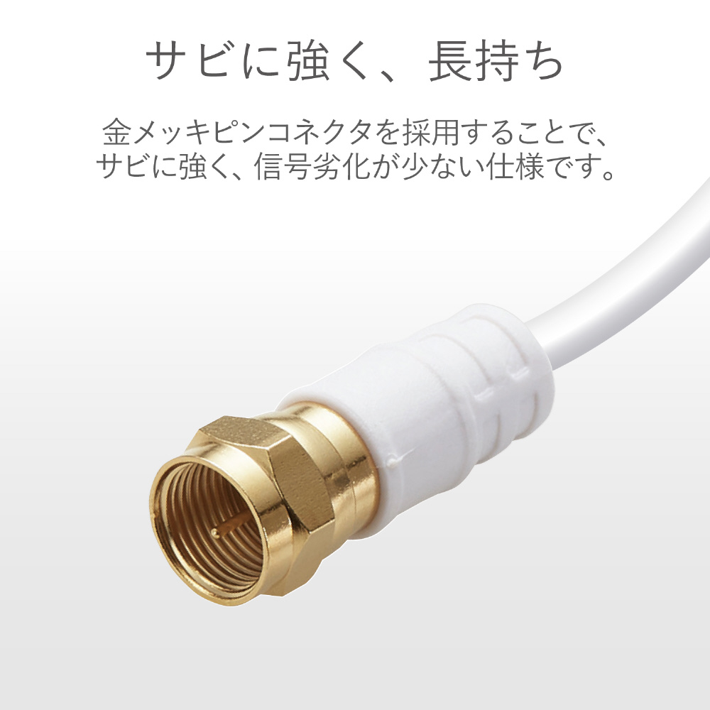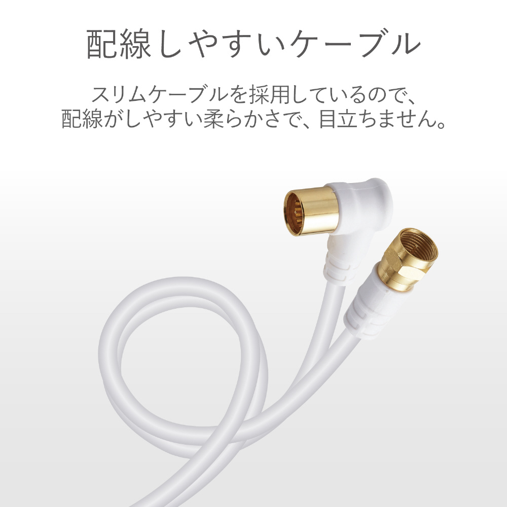 新4K・8K(3224MHz)放送に対応した製品です。地デジ・BS・CSのデジタル放送やケーブルテレビでも使用できます。壁面のテレビ端子とテレビ、レコーダー、テレビチューナー付パソコンなどの接続に最適な接続ケーブルです(5m)。