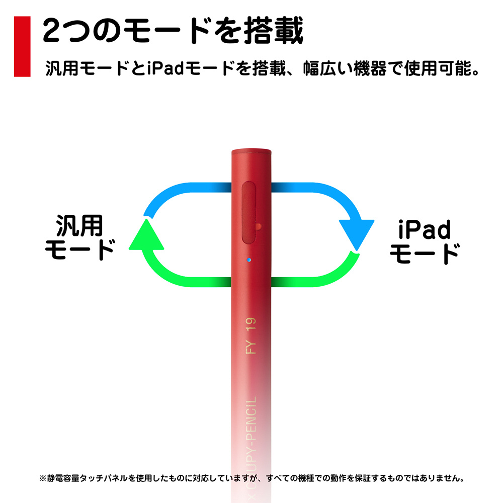 | 仕様1 | [対応機種] ・スマートフォン/タブレット ※静電容量タッチパネルを使用したものに対応していますが、すべての機種での動作を保証するものではありません。 ・iPad 第9/8/7/6 世代 ・iPad Air 第4/3 世代 ・iPad mini 第6/5 世代 ・iPad Pro 11 インチ 第3/2/1 世代 ・iPad Pro 12.9 インチ 第5/4/3 世代 |