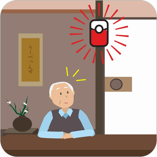 ●送信機からの電波を受信すると離れた場所で音と眩しい光でお知らせ。