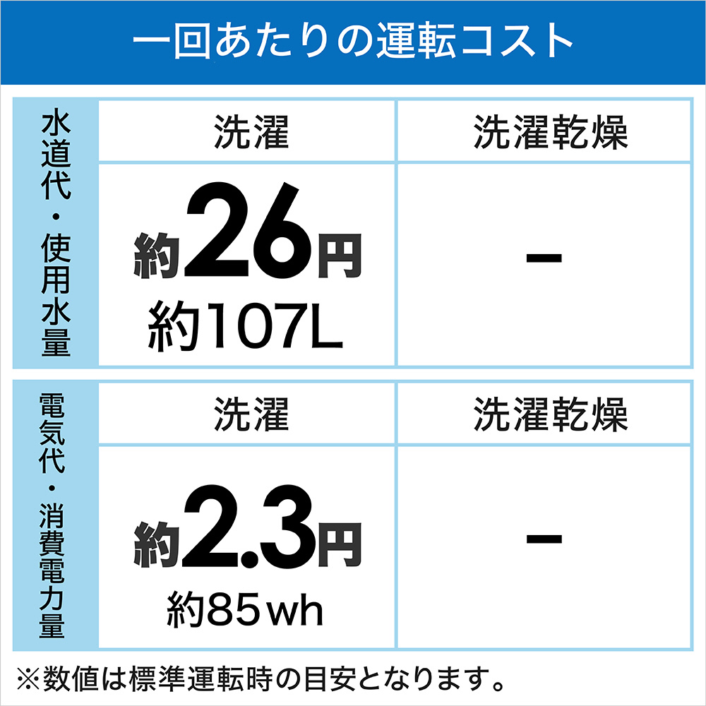 | コース | 標準/部屋干し/つけおき/スピード/毛布/おしゃれ着 |