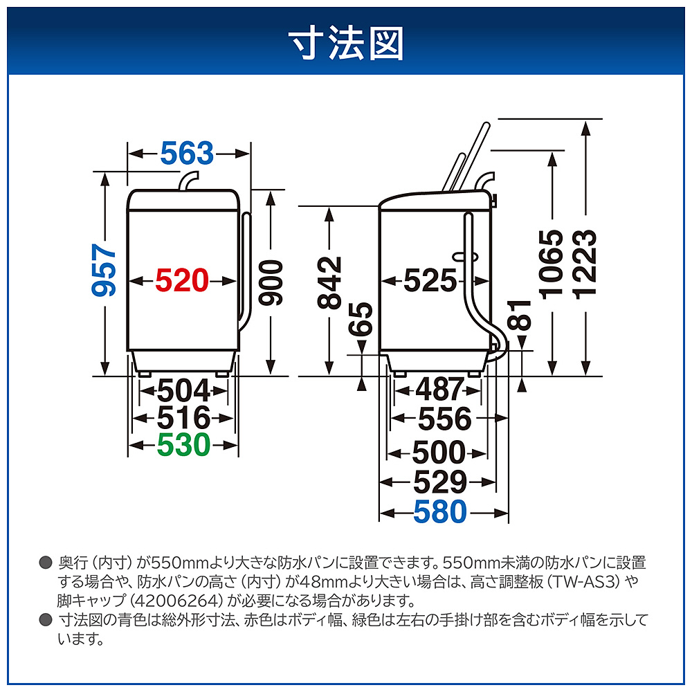 | 設置可能防水パン | 奥行内寸法 550mm以上 |