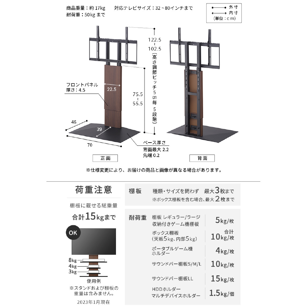 32〜80V型対応 テレビスタンド WALL V3 ロータイプ サテンブラック WLTVB5119 【864】