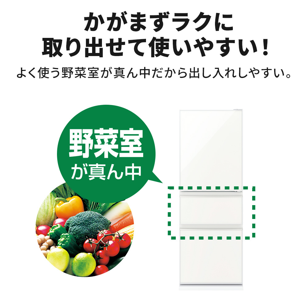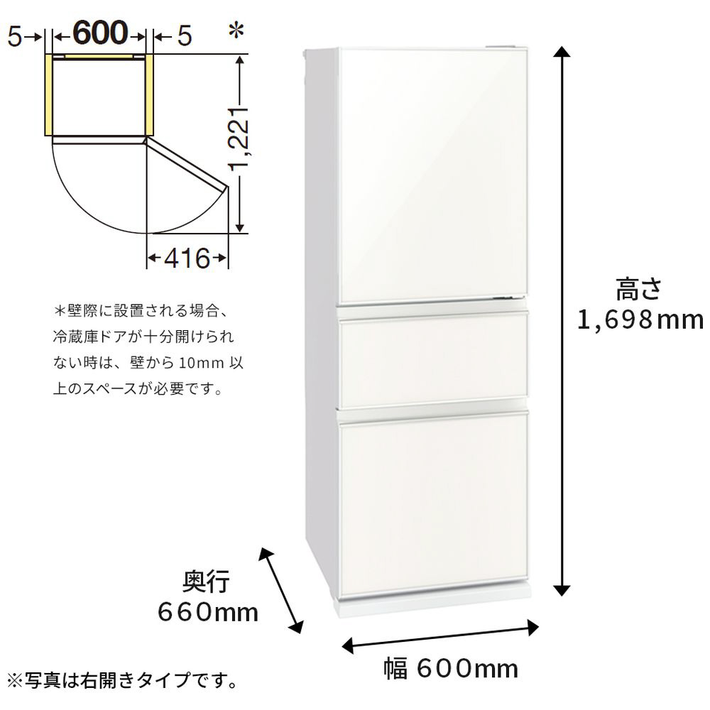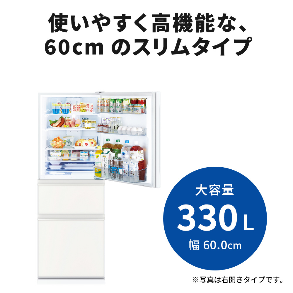 | 商品名 | 冷蔵庫 CGシリーズ ナチュラルホワイト MR-CG33G-W [3ドア /右開きタイプ /330L] 【基本設置料金セット】 |