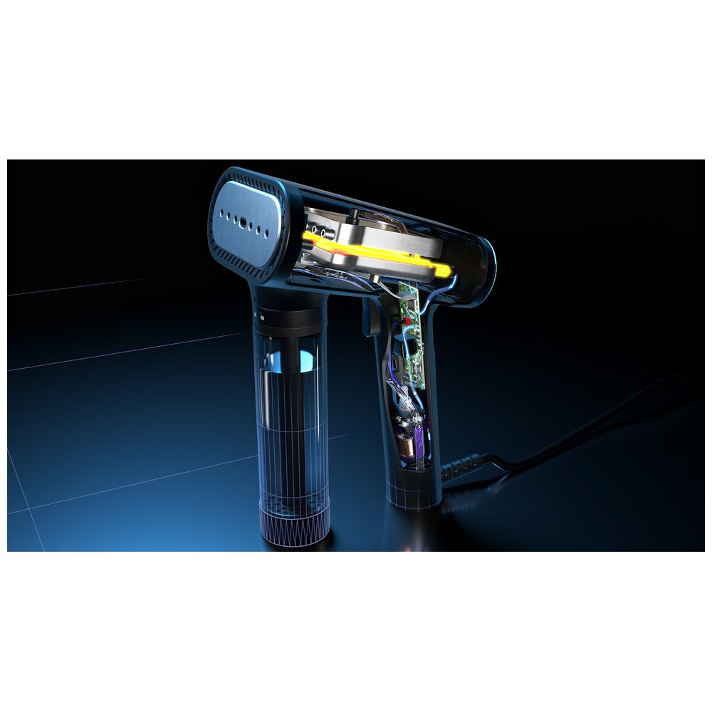 トリガーを一度引くとスチーム噴射、もう一度引くとスチームが停止。使用中にトリガーを押し続ける必要はありません。
