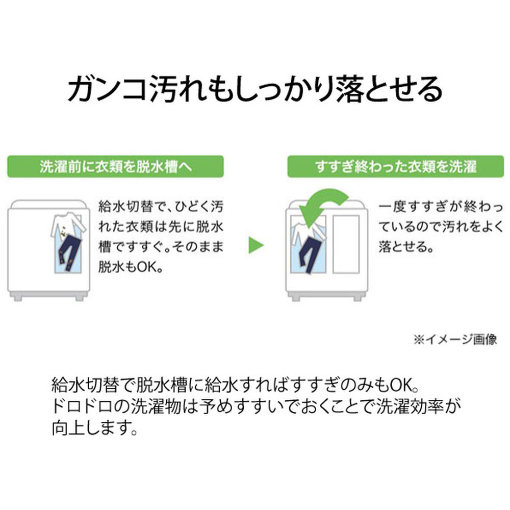 給水切替で脱水槽に給水すればすすぎのみもOK。ドロドロの洗濯物は予めすすいでおくことで洗濯効率が向上します。