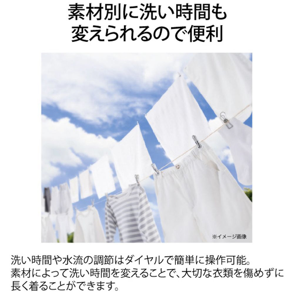 洗い時間や水流の調節はダイヤルで簡単に操作可能。素材によって洗い時間を変えることで、大切な衣類を傷めずに長く着ることができます。