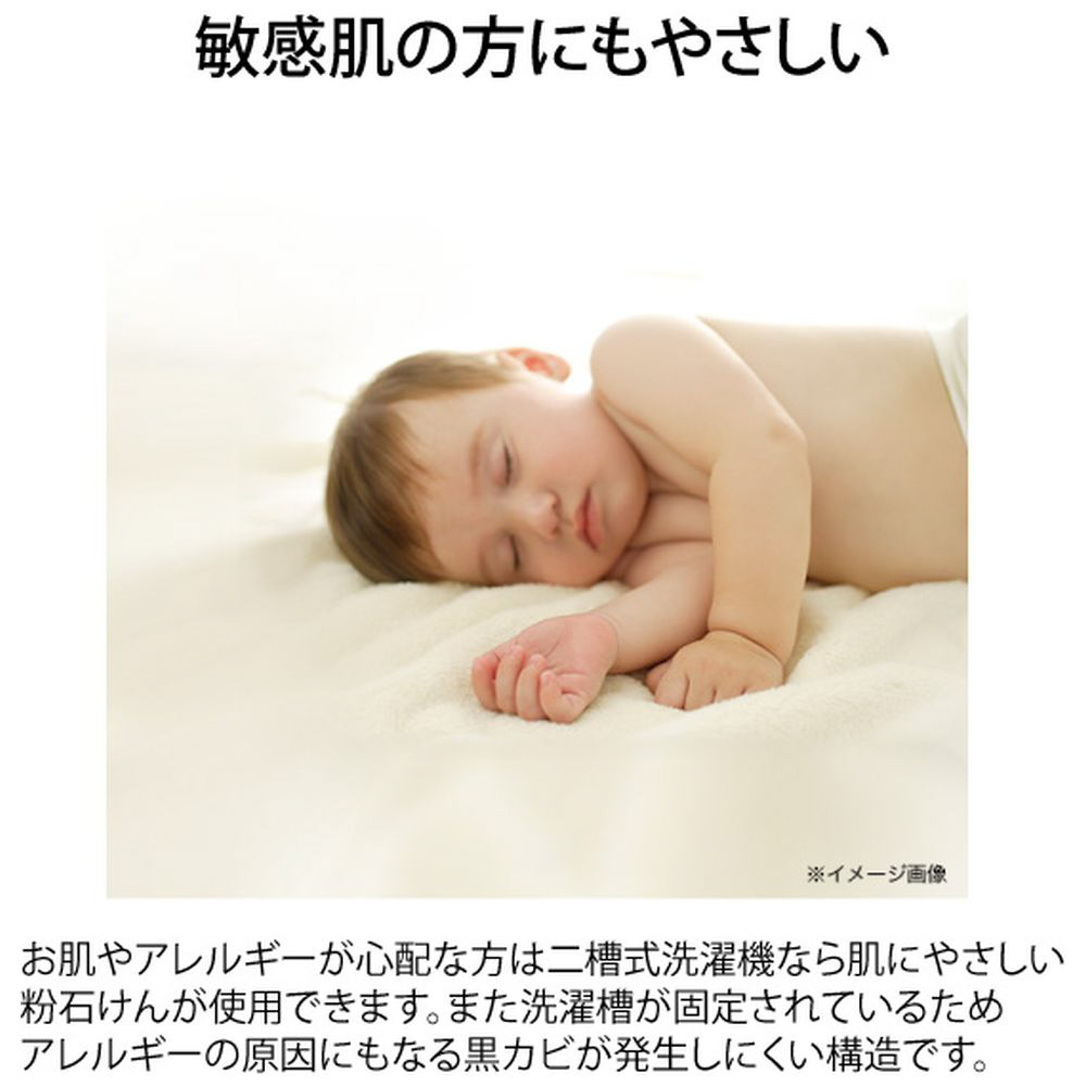 お肌やアレルギーが心配な方は二槽式洗濯機なら肌にやさしい粉石けんが使用できます。また洗濯槽が固定されているためアレルギーの原因にもなる黒カビが発生しにくい構造です。