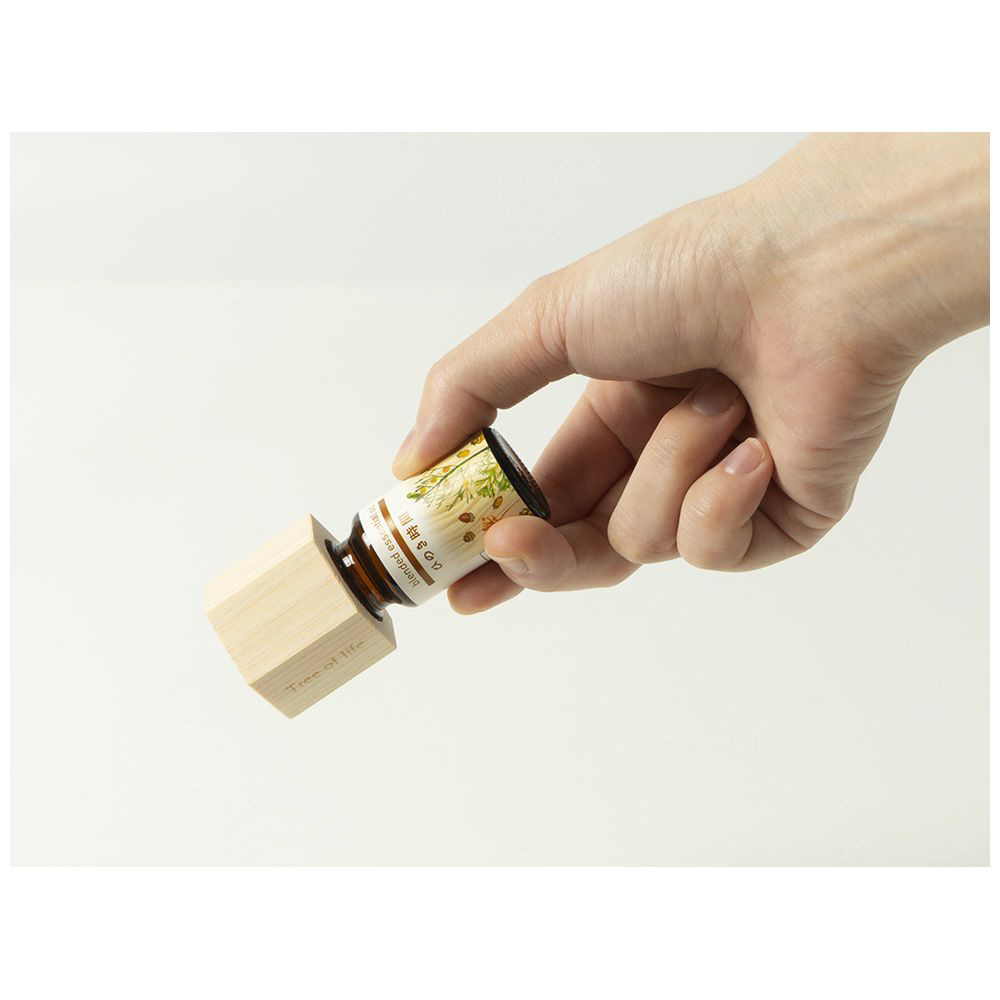 エッセンシャルオイル(精油)瓶のキャップと付け替え、瓶をそっと傾けると優しくアロマが広がります。