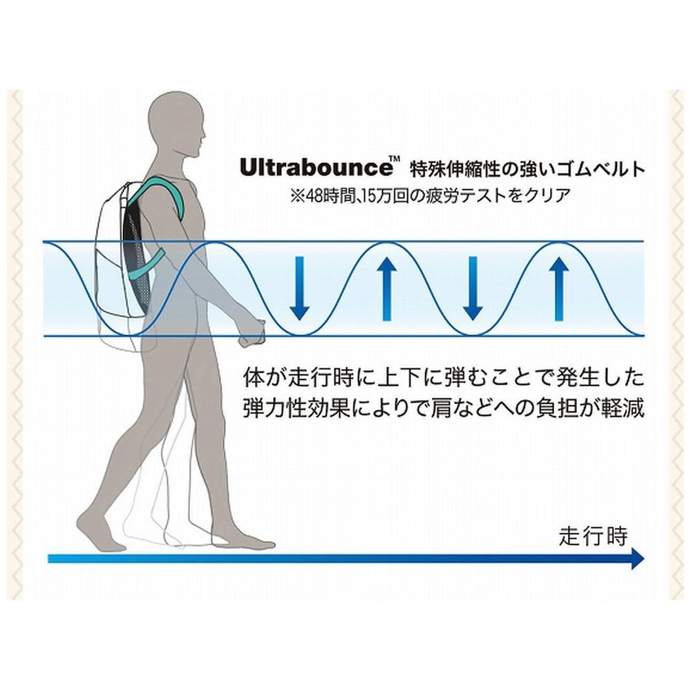 バネの原理、サスペンションのメカニズム効果で首、肩、背中、腰への負担を軽減。