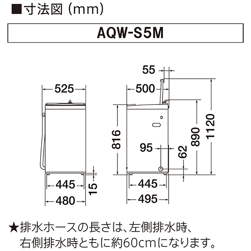 全自動洗濯機  ホワイト AQW-S5M-W [洗濯5.0kg /上開き]