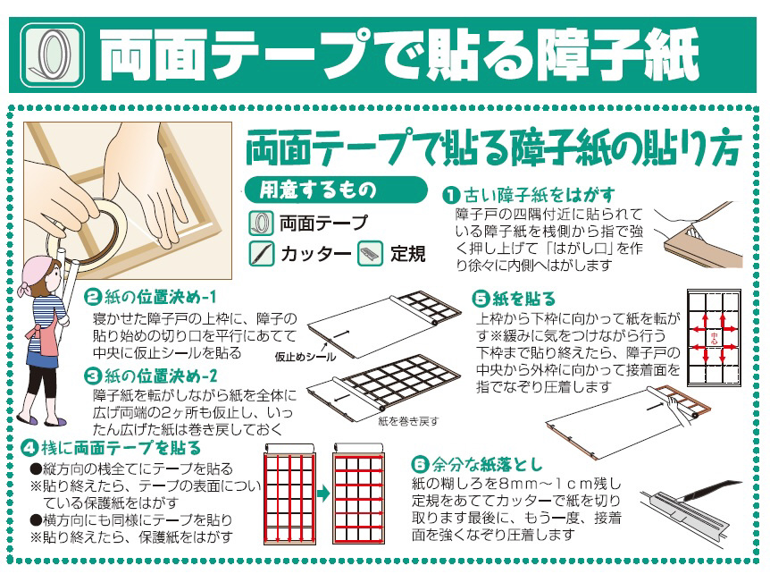 両面テープで貼る障子紙