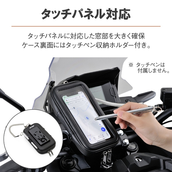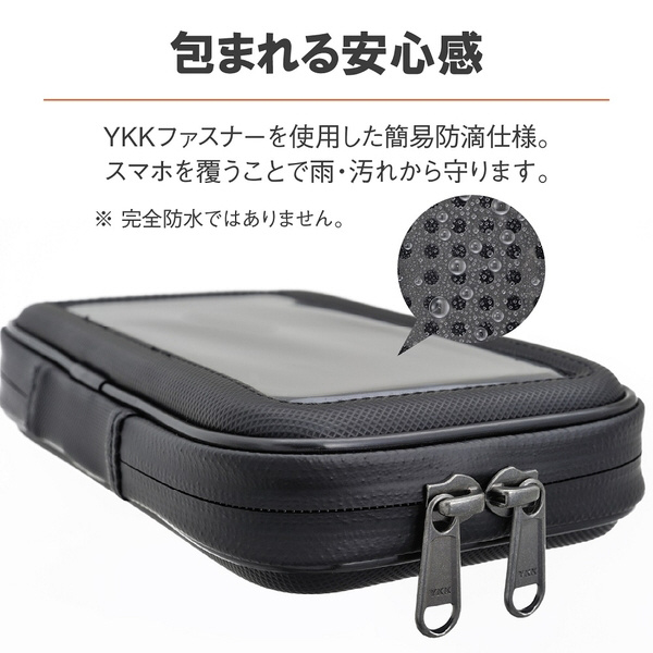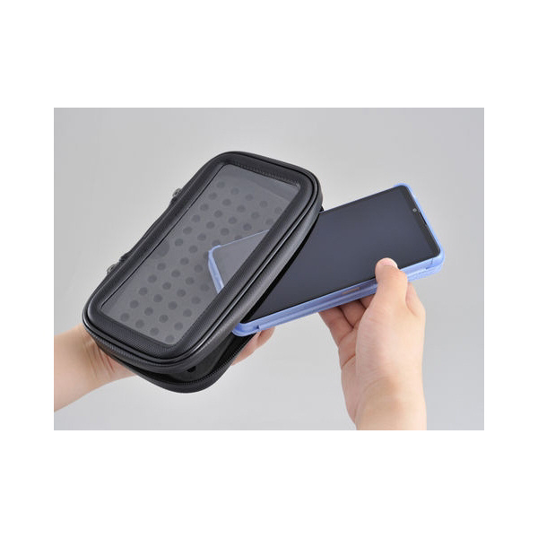 製品構造上、透明窓部の縫製部やファスナー部などからケース内部に浸水しますので、収納物の水濡れ対策は全て使用者本人のリスクにおいて行なってください。