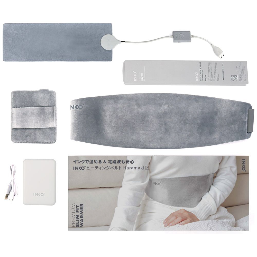 INKO ヒーティングベルトHARAMAKI 2は、電熱線に代わり銀ナノインクを用いた技術で温めて、電磁波を出さず超スリムにフィットするホットベルトです。