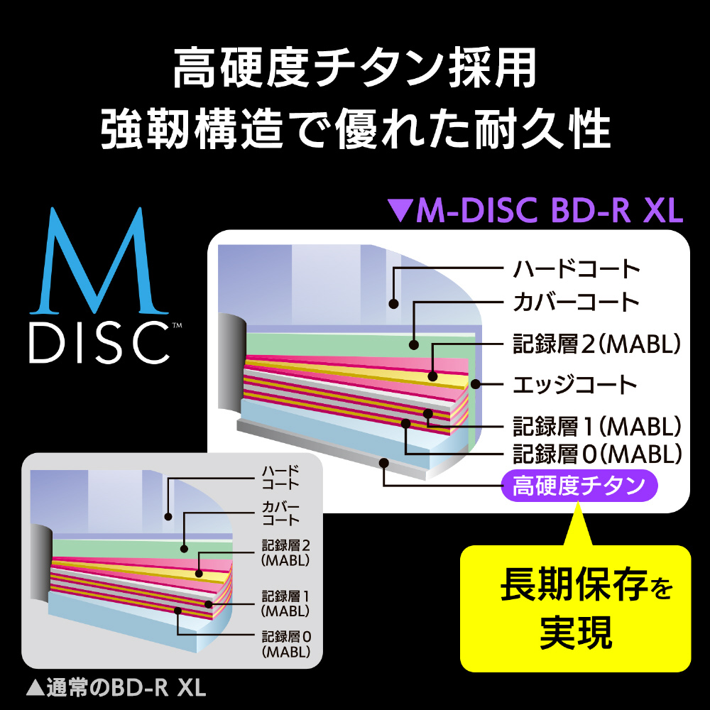 高硬度チタン層を追加した、強靭構造・長期保存用ブルーレイ「M-DISC」