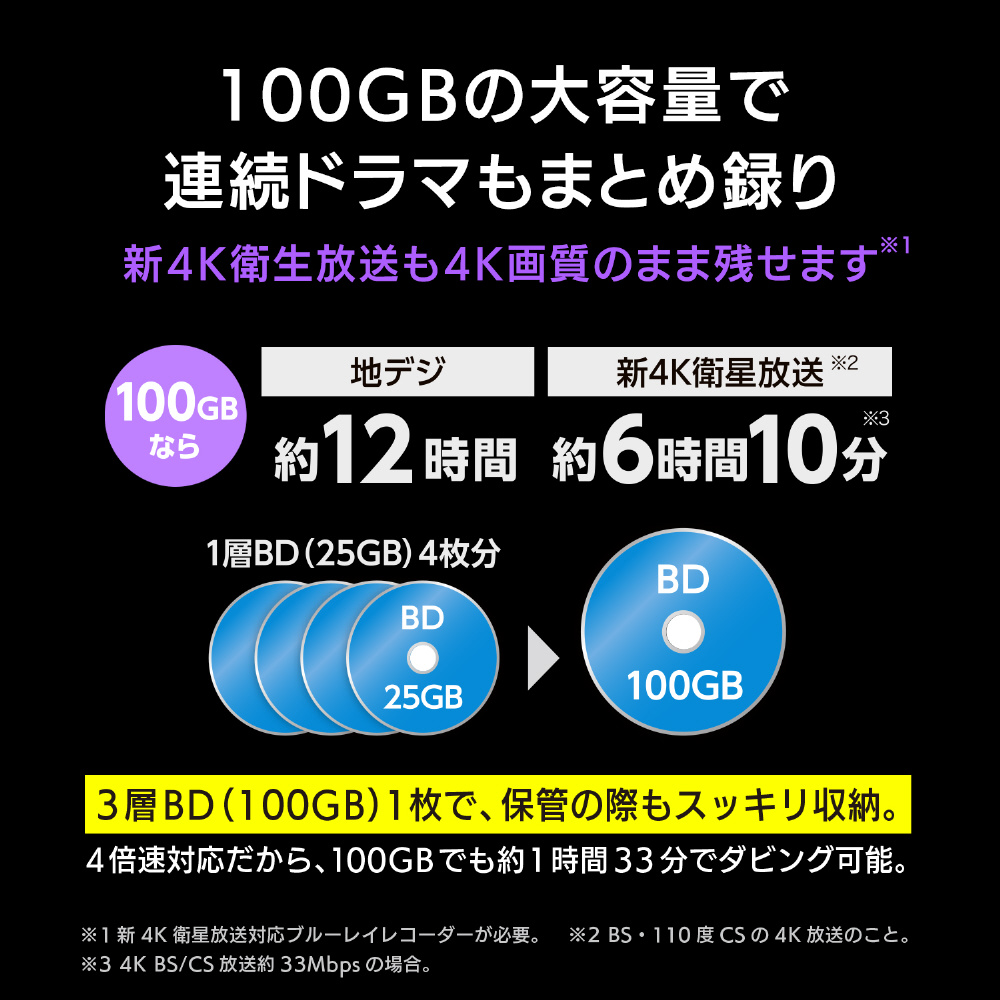 | 記録時間 | 地上デジタル720分、BSデジタル520分、4K BS/CS370分 |