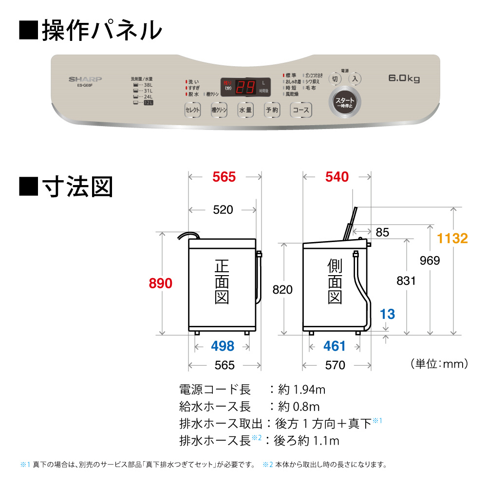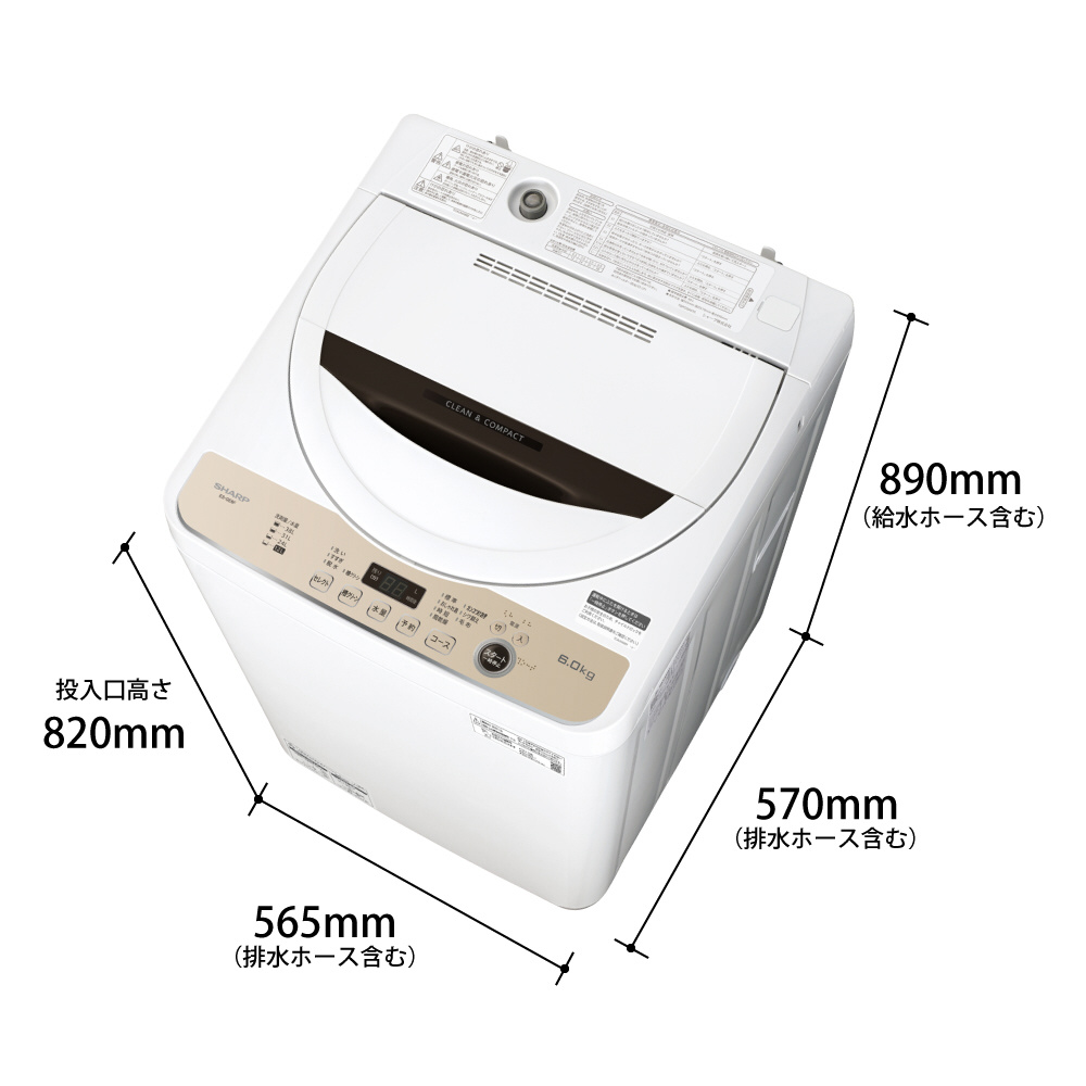 全自動洗濯機 ブラウン系 ES-GE6F-T [洗濯6.0kg /簡易乾燥(送風機能) /上開き]