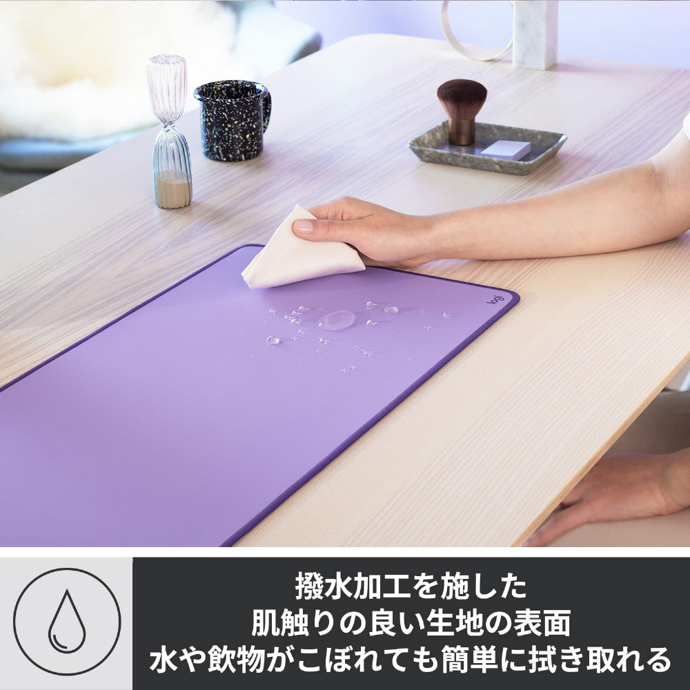 ■マウスとキーボードを置けるほど幅広い「デスクマット」があると、マウスをよりスムーズかつ静かに操作できるうえ、デスクコーディネートの幅が広がります。