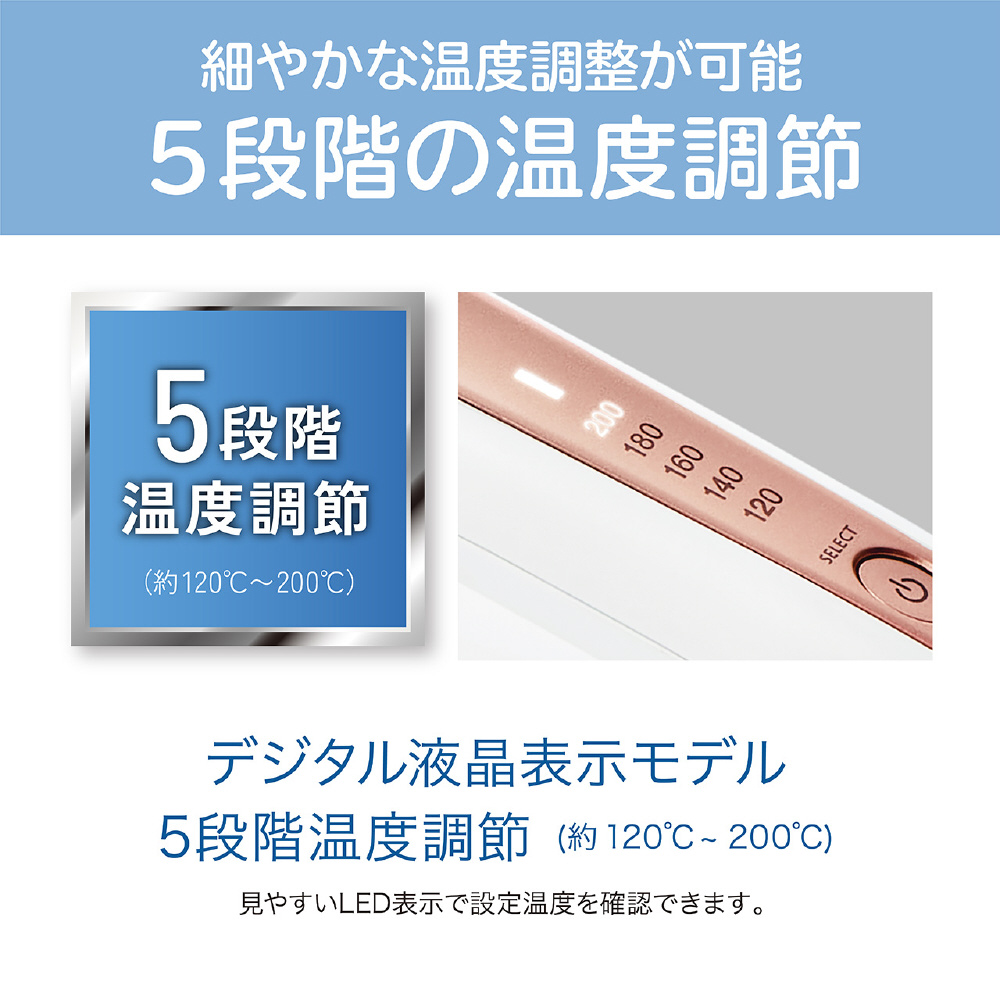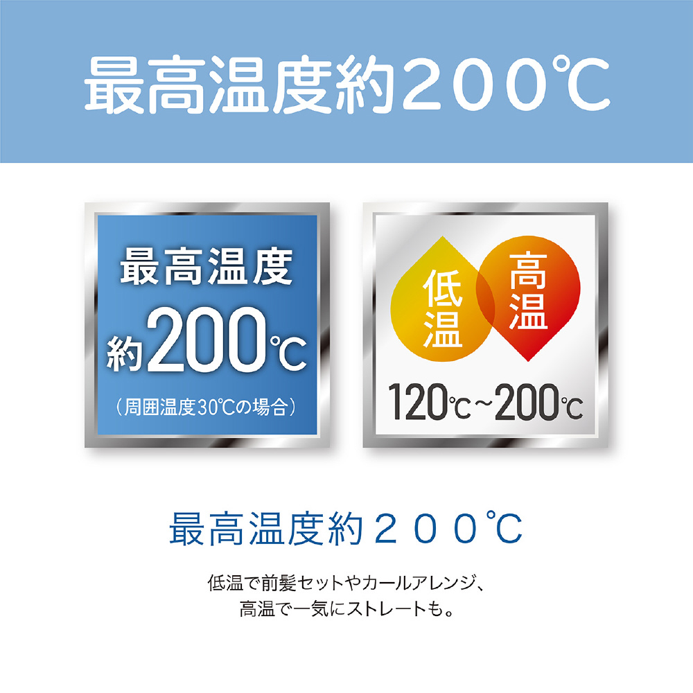 ■スピード加熱25秒(200℃設定、100度到達時)200℃の高温タイプ 5段階の温度調節(20℃刻み)