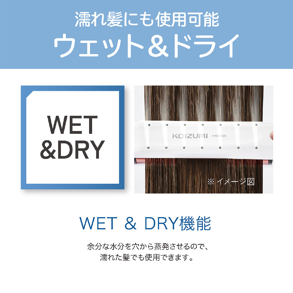 ■WET&DRY機能。余分な水分を穴から蒸発させるため、濡れた髪でも使用可能