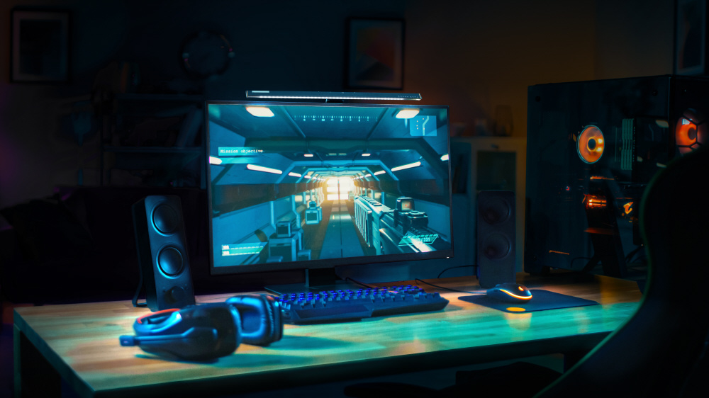 照明のプロがゲームのプロと作った目に優しいゲーミングライト。デスク回りスッキリ、目に優しい手元を照らす確かな光。リモートワークなどのモニターライトとしても活用